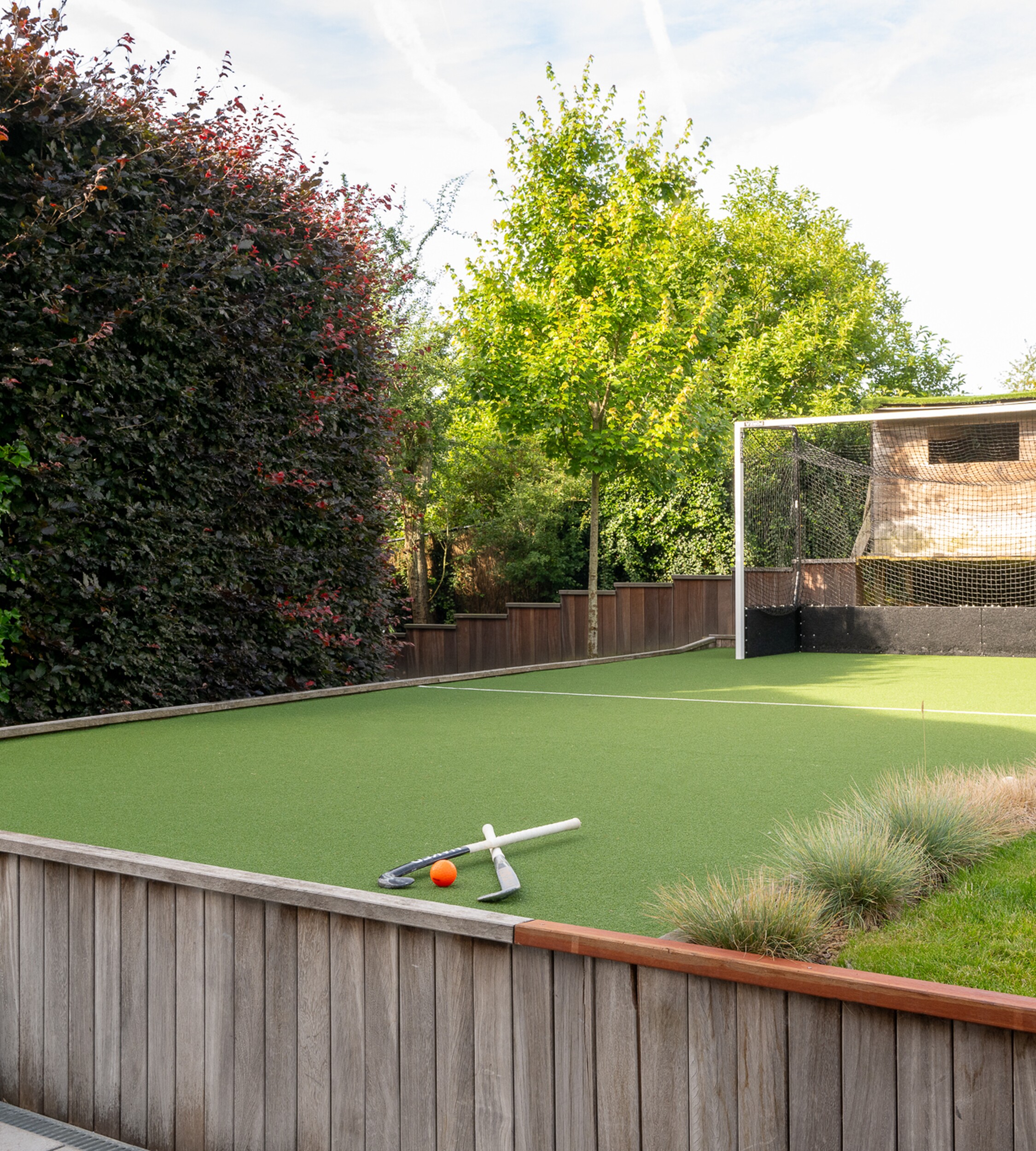 Toen ontstond het idee: wat als we in onze eigen tuin een volwaardig hockeyveldje zouden aanleggen? Een plek waar ze op elk moment van de dag kunnen trainen, samen met vrienden of gewoon even hun hoofd leegmaken. Het moest iets meer zijn dan een speelveldje, het moest echt passen bij ons thuis, in onze omgeving.