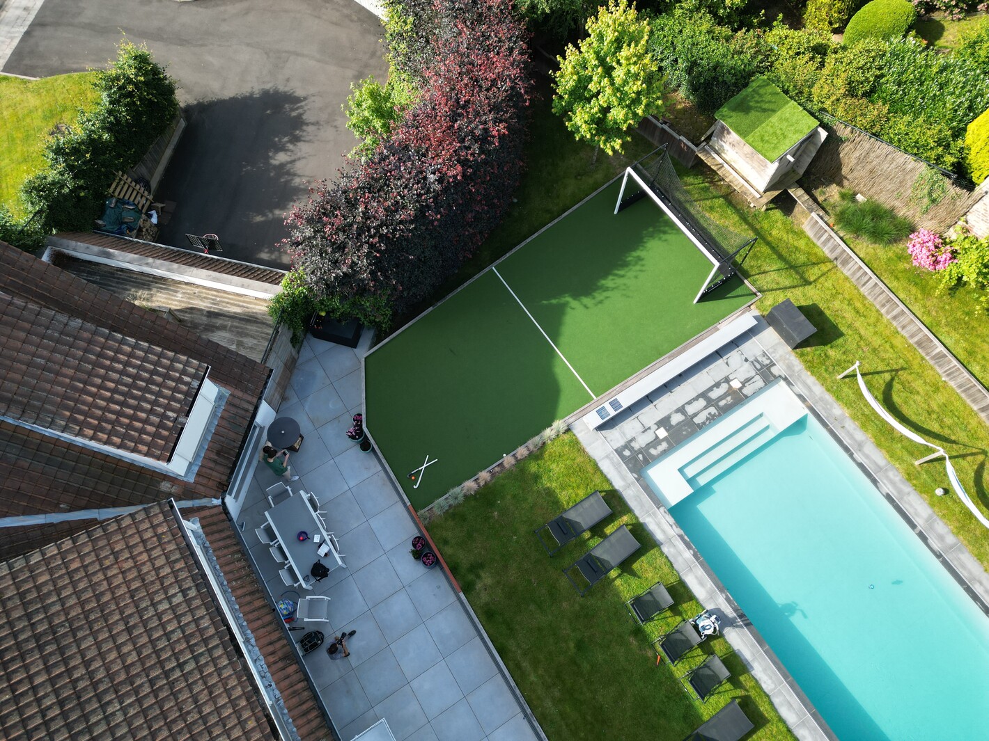 Wat me misschien nog wel het meest plezier doet, is hoe dit veldje het hart van onze tuin is geworden. Onze kinderen nodigen vaak vrienden uit - spontaan na school of in het weekend. Er wordt gelachen, gescoord, en soms zelfs fanatiek getraind. Als ouder weet je dat je ze iets geeft wat bijdraagt aan hun ontwikkeling en geluk.