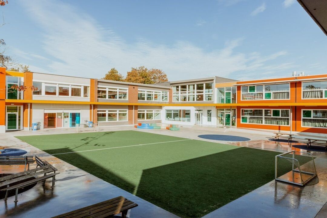 Multifunctioneel en uitnodigend: het ontwerp omvat naast sport ook een interactieve en fantasierijke speelzone voor jonge kinderen.