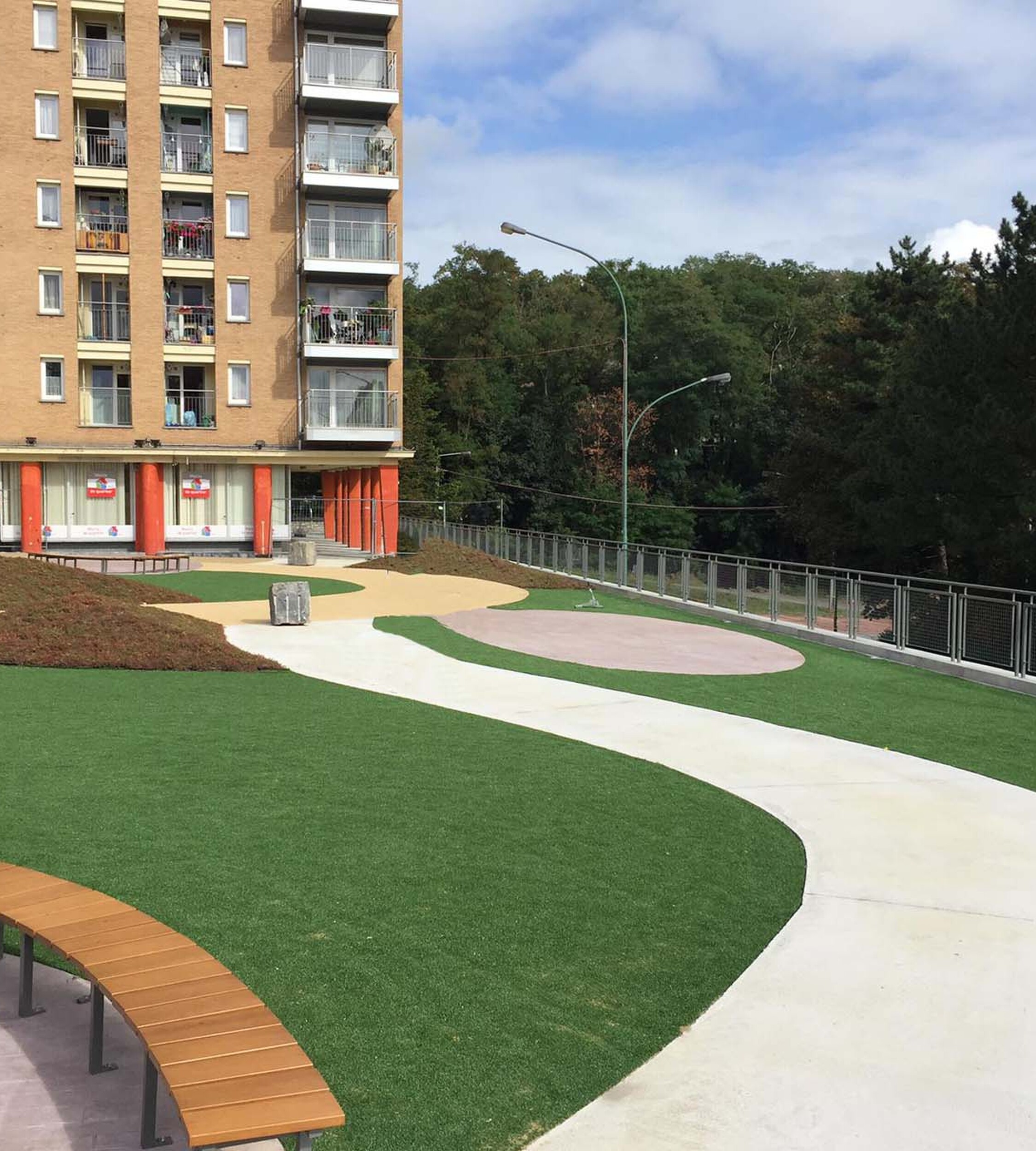 Namsports biedt een slimme investering, vooral op plekken waar natuurlijk gras moeilijk groeit. Met waterdoorlatende en waterbufferende eigenschappen, ondersteunen we openbare besturen bij het ontzorgen van hun beschikbare ruimte.